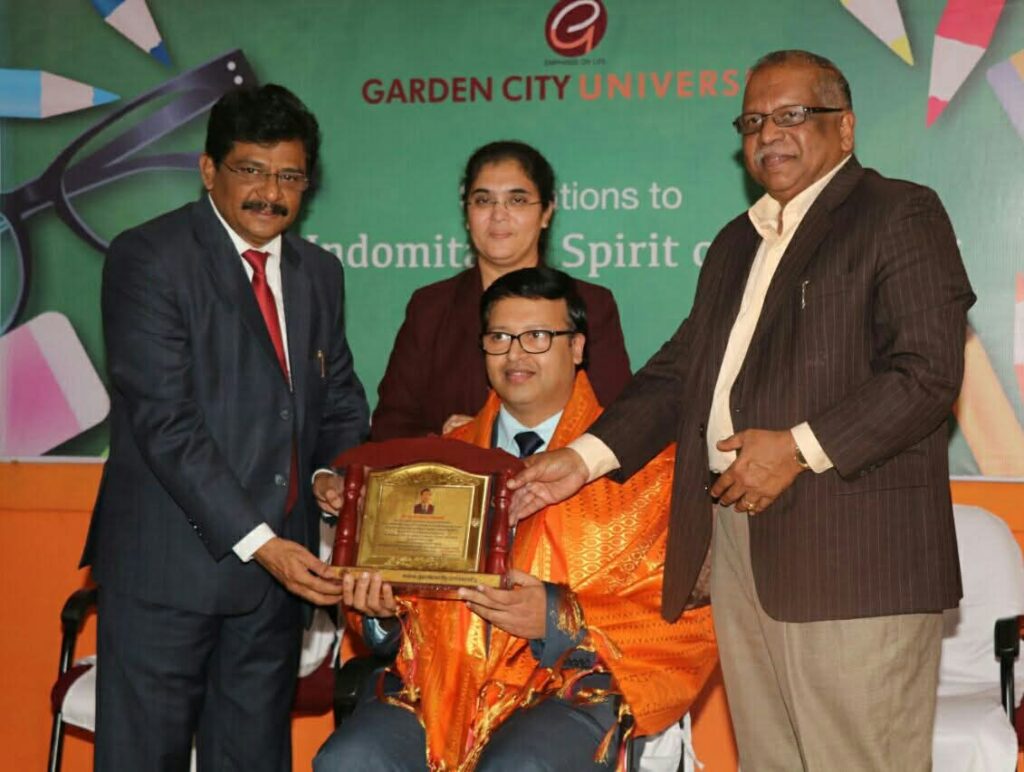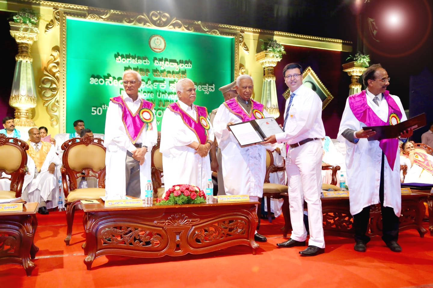 PhD awarded by His Excellency Rhudabhai Vajubhai Wala, Governor of Karnataka in 2015, also present are the Higher Education Minister Mr. Rajkumar Deshpande & University Grants Commission (UGC) Chairman Professor Ved Prakash & other dignitaries of the prestigious Bangalore University