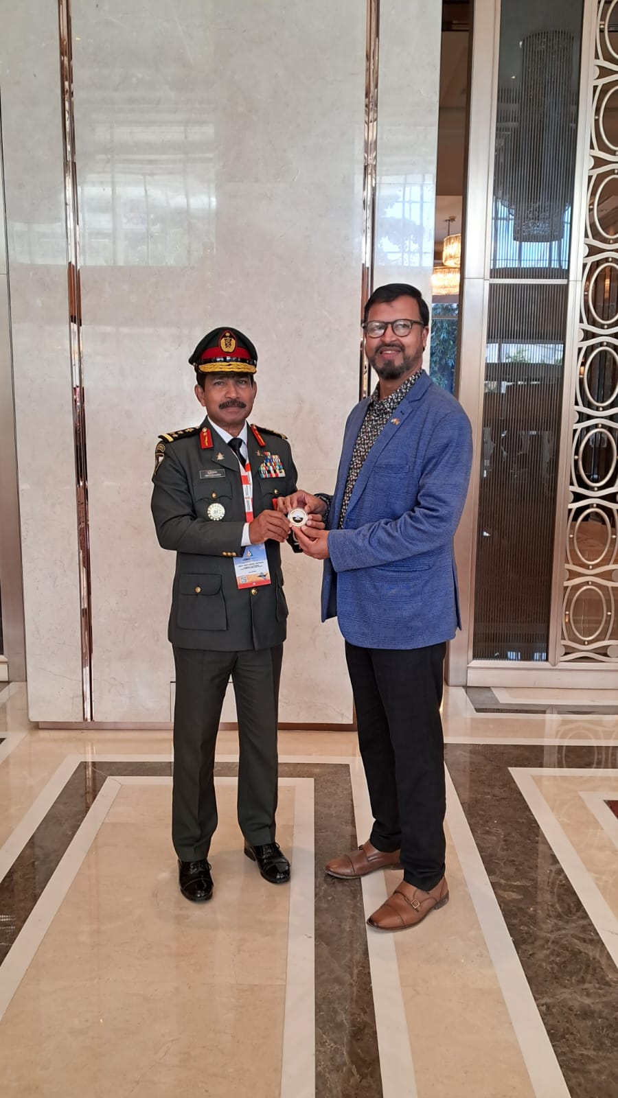 Lt. General Abdul Raheem Abdul Rahman, Chief of Defence Forces of the Republic of Maldives handing over a token of appreciation from Maldives National Defence Forces (MNDF)